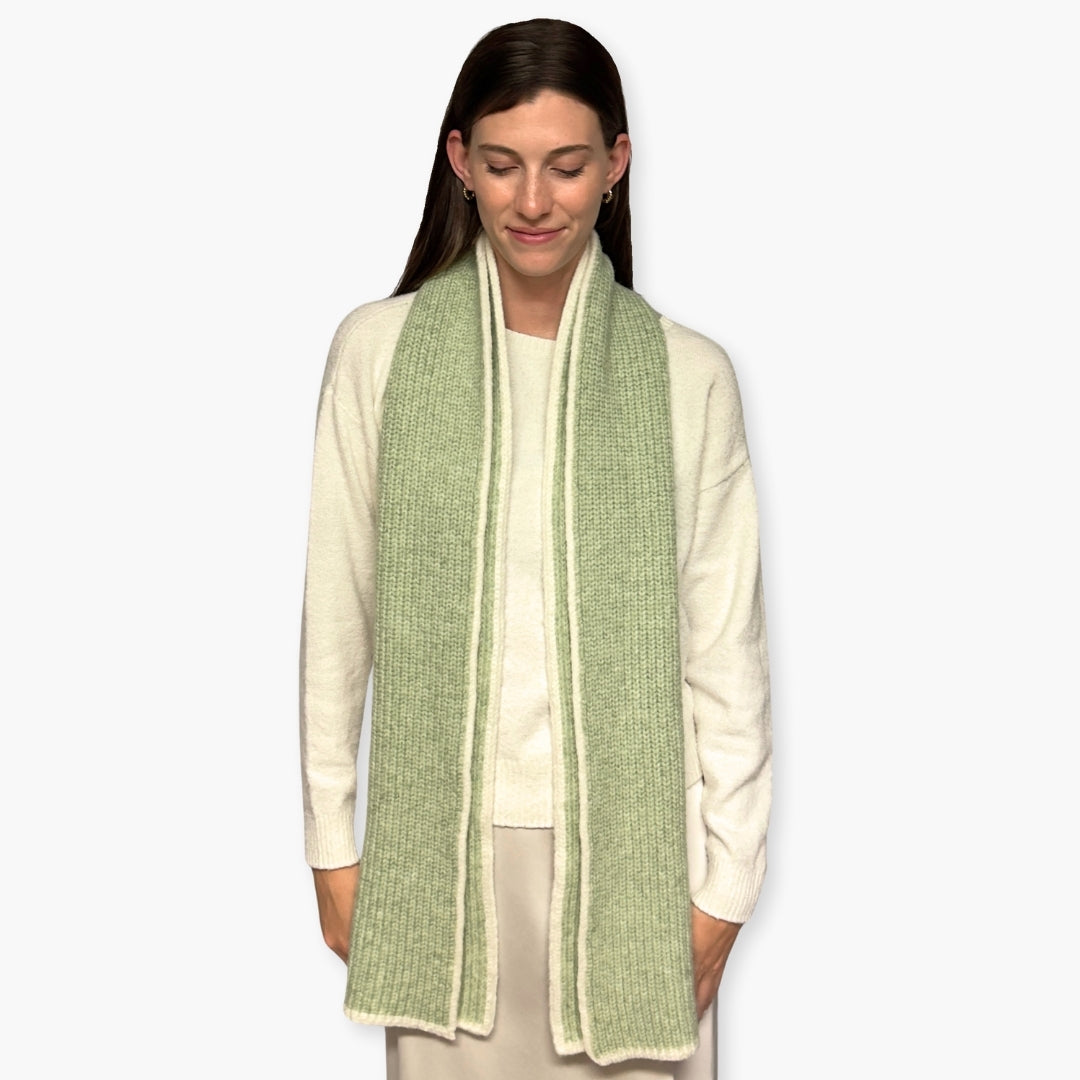 Stay comfy and cozy this season with our Fine Knitted scarf with White Trim ~ a lusciously soft accessory that is designed to keep you warm and looking sharp during the coldest days.