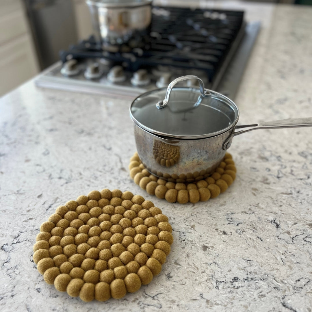 Add a touch of modern to your kitchen with these handmade trivets made of New Zealand wool. They are handcrafted using Fair Trade standards by skilled female artisans in the Kathmandu Valley in Nepal. The perfect combination of soft wool and simple design come together in these handcrafted trivets.