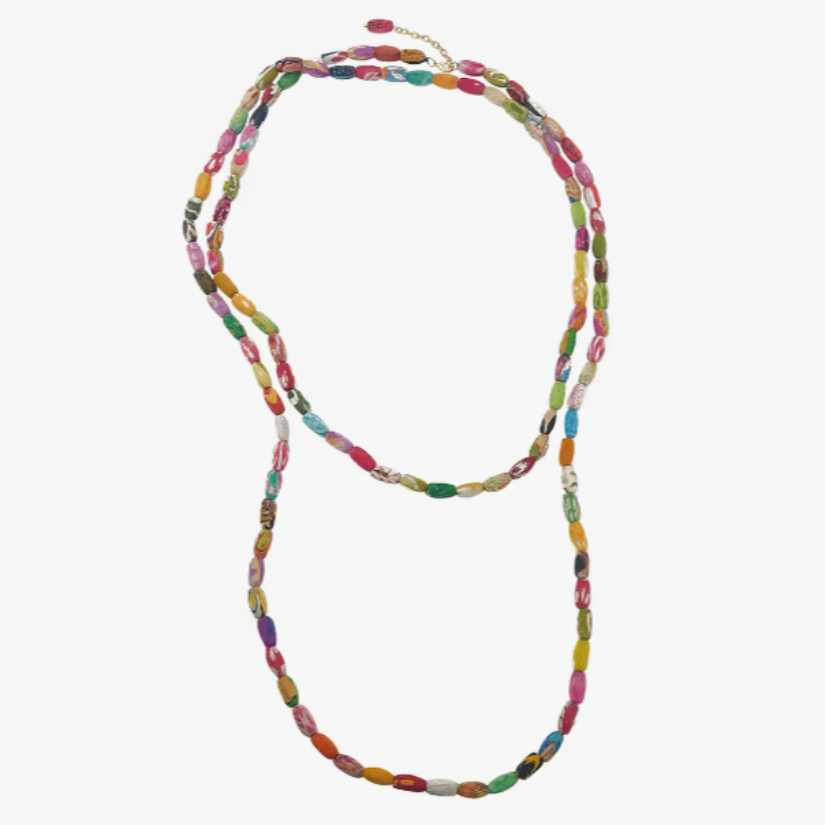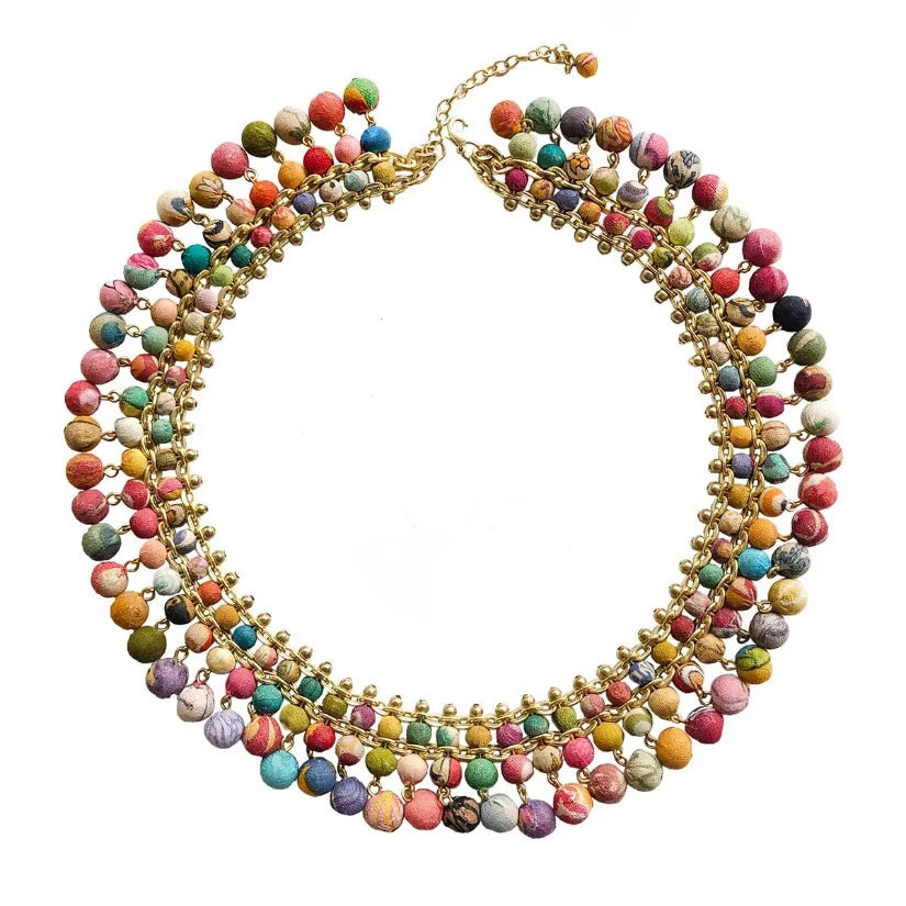 Humble Hilo Sari Jewelry, Spaced Textile Bead Necklace on Chain