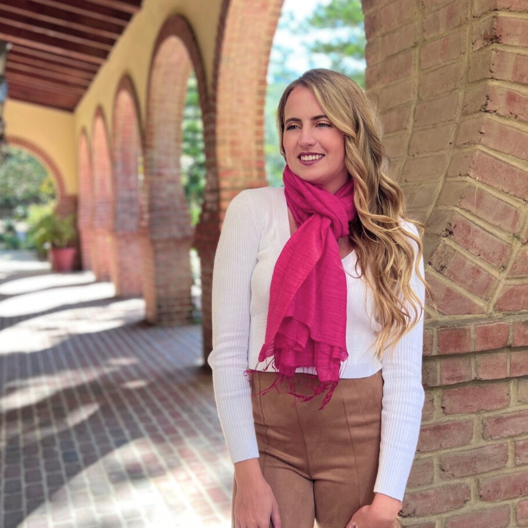 These beautiful silk scarves for women use an all-natural organic 100% silk blend. They are handwoven on traditional looms and hand dyed using techniques passed down from mothers to daughters for generations.